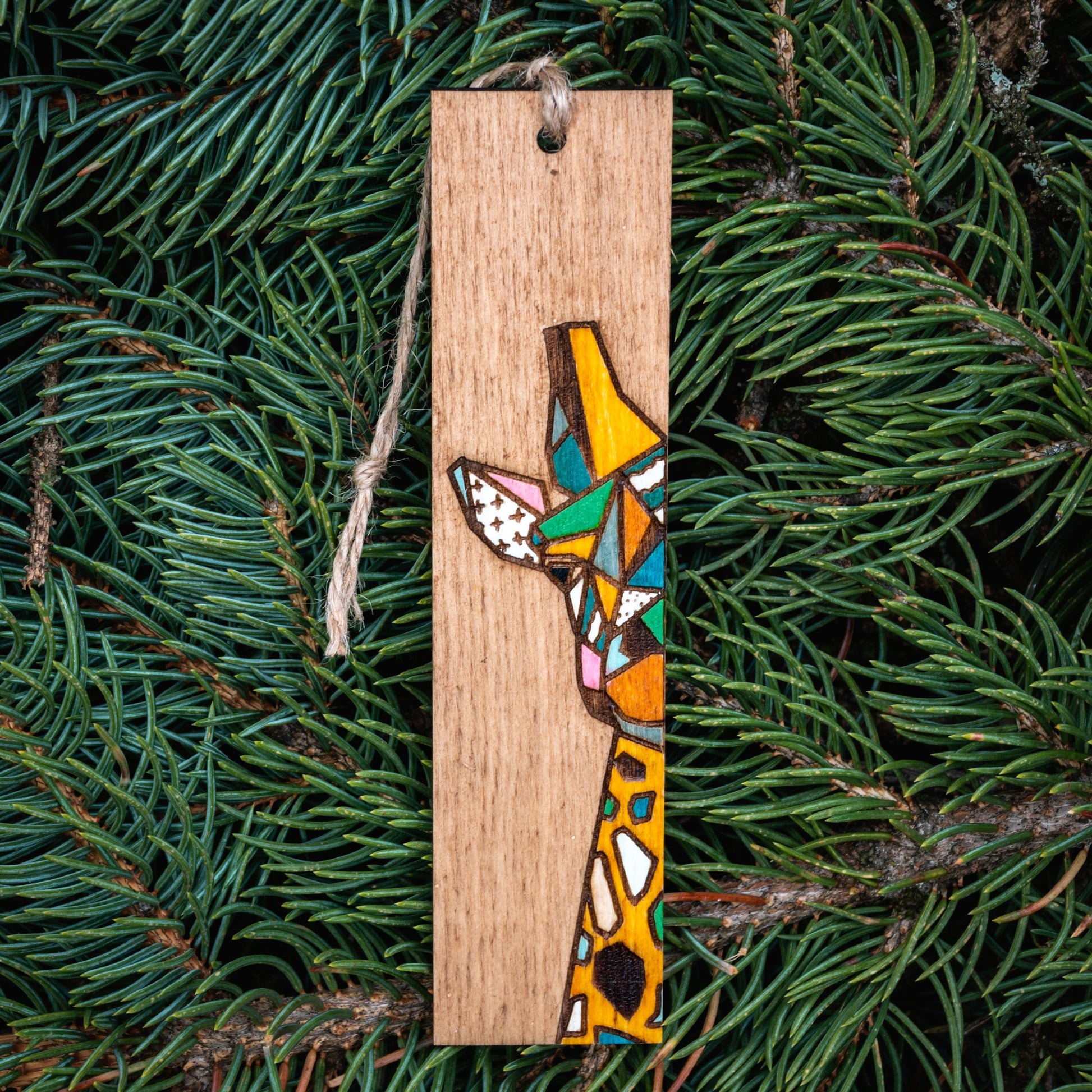Marque-pages en bois gravé et peint à la main.
