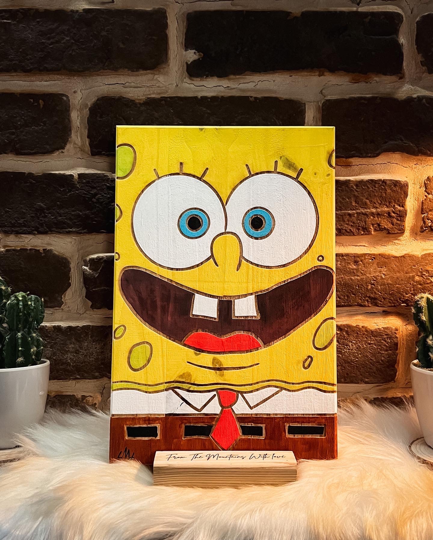 Tableau moderne peint à l’acrylique, gouache, gravure et pyrogravure.